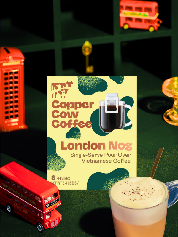 Bold Vietnamese robusta coffee meets posh Earl Grey tea, vanilla, and a dash of nutmeg for a cozy-meets-classy pick-me-up you didn’t know you needed. Rich, aromatic, and just a bit cheeky, London Nog is the perfect seasonal pour-over to warm up your winter, made with no sugar or artificial flavoring. Each single-serve filter is pre-filled for a smooth, café-quality cup at home.