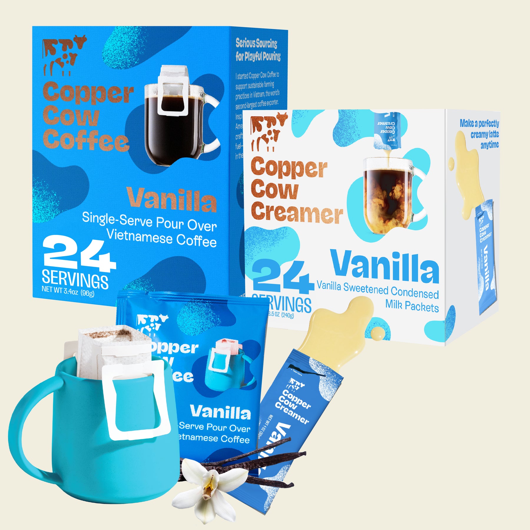 Includes 24 Vanilla Creamers + 24 Vanilla Pour Overs.